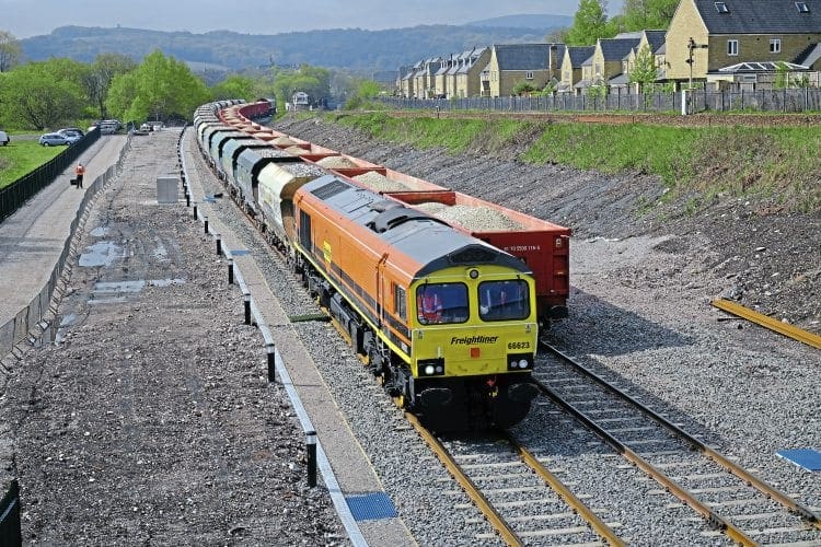 They were previously limited to 18 wagons (1,750 tonnes) by the length of the old sidings, but will now be progressively increased to 26 wagons, carrying up to 2,500 tonnes. Each train will replace 76 heavy lorries.