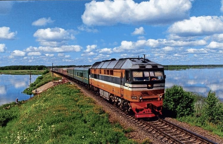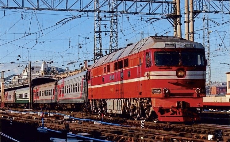 Within Russia proper the largest concentration of TEP70s was on the October Railway, which had about 140 of the class. They operated all the main line services to the south and west from St Petersburg (Vitebsky station) to Minsk and the Baltic states, the cross-country route between Novosokolniki, Bologoye and Yaroslavl and, prior to electrification, a long section of the Murmansk line.