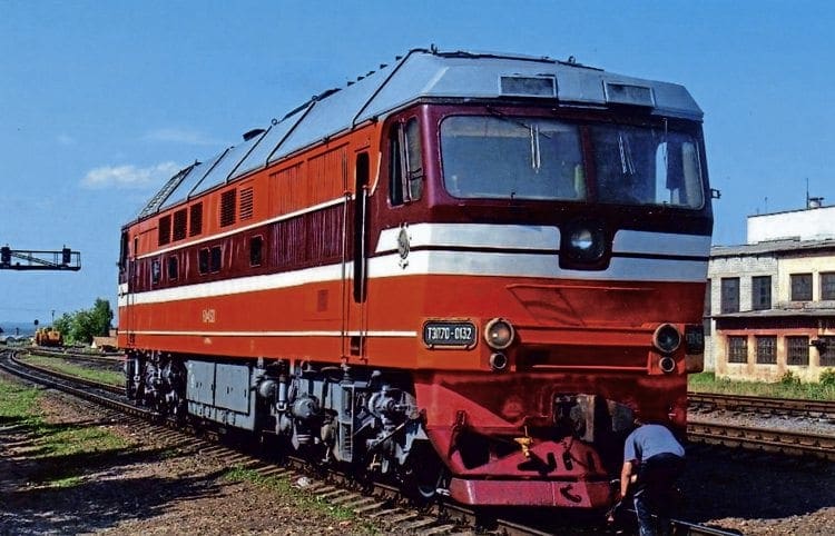 The design of the TEP70 seems to have started at Kolomna in 1969 under constructor-in-chief Yu V Khlebnikov. It was a 135-tonne Co-Co with a maximum speed of 160kmh (100mph), and fitted with the 2,264kw (3,975hp) Kolomna model DA-5D49 4-stroke V16 engine.