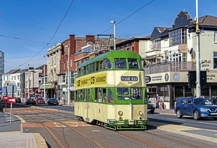 BLACKPOOL ‘Balloon’ car No. 715 has undergone a partial repaint at Rigby Road depot into authentic 1970s livery with full green cab surrounds, complete with period advertising.
