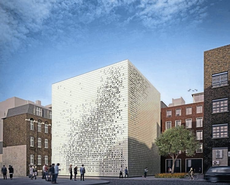 The four-storey cube has been designed by architects Weston Williamson + Partners, with William Matthews Associates. It will contain a substation, electrical equipment and a ventilation shaft for the Northern Line.