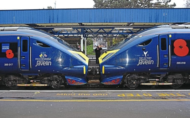 Class 395 ‘Javelin’ charter trains have raised more than £125,000 for the Royal British Legion’s Poppy Appeal. With this year’s Remembrance Day only two months away, Doug Lindsay takes up the story.
