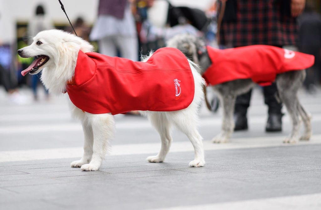 Some branded dog coats are being given to staff in return for a charitable donation.