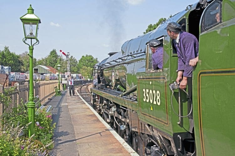 BULLEID ‘Merchant Navy’ Pacific No. 35028 Clan Line made a surprise appearance on Bluebell Railway services on August 27 during a break from its busy main line schedule.