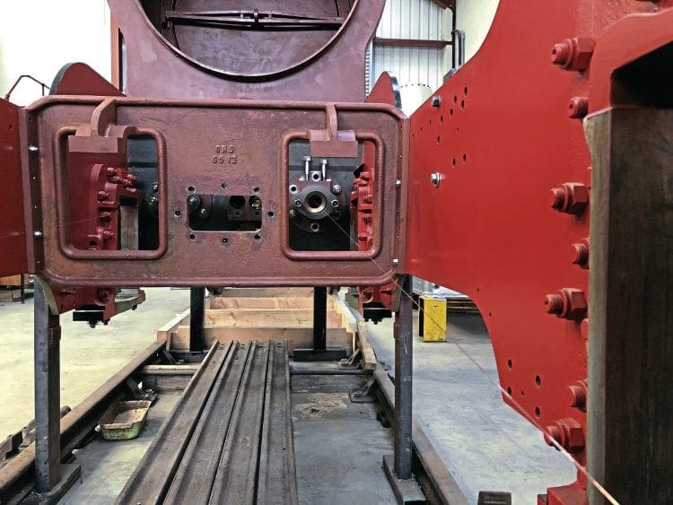 Also recently fitted by Ian Howitt was the motion bracket, which was set up and aligned accurately in the time-honoured method with piano wire. Mr Howitt has also fabricated the locomotive’s sandboxes, which are now in Shildon ready for fitting.