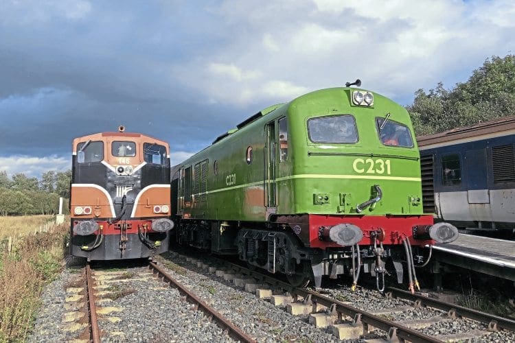 A trio of ITG-owned locomotives was the main attraction for the day, namely Metro-Vicks A Class Co-Co No. A39R in black with orange stripe livery, C Class Bo-Bo No. C231 in original green livery, along with stalwart General Motors 141 Class No. 146 in Irish Rail livery.