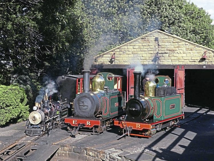 Rhyl Miniature Railway’s Cagney 4-4-0 No. 44 (left) gives a fascinating contrast in size between miniature and minimum-gauge locos sharing a common 15in gauge.
