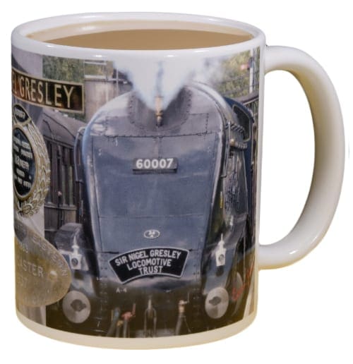 Sir Nigel Gresley mugs can be ordered from York camera Mart 18 Church Street York yo1 8BE. Tel: 01904 642491. www.yorkcameramart.co.uk or [email protected]