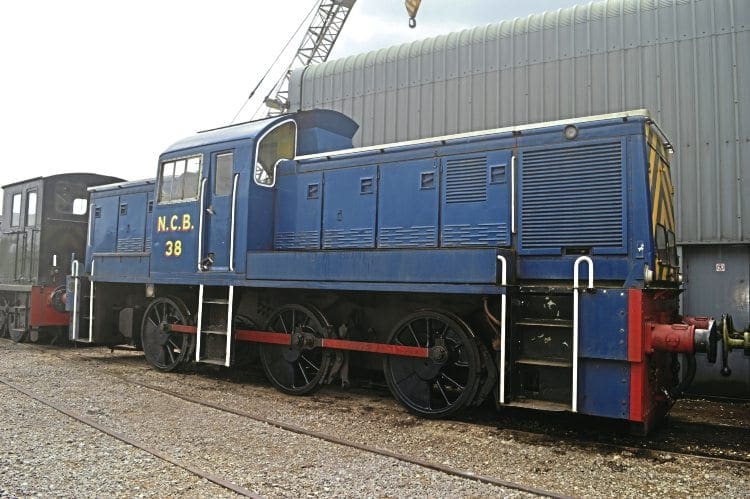 There are a variety of diesel locos on the railway, both purpose-built for industrial use and former BR-owned examples, including 1952-built Drewry Class 04 0-6-0 204hp diesel-mechanical No. D2203, which was once fitted with side-sheets for working the Wisbech & Upwell Tramway, and Swindon-built Class 14 0-6-0 diesel-hydraulic No. D9513, now running as NCB No. 38.