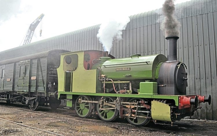 The most recent complete restoration to working order in the locomotive department is outside-cylinder Hudswell, Clarke 0-6-0ST No. 1208, originally delivered to the Ministry of Munitions at Gretna Green on June 19, 1916 as Mitchell.