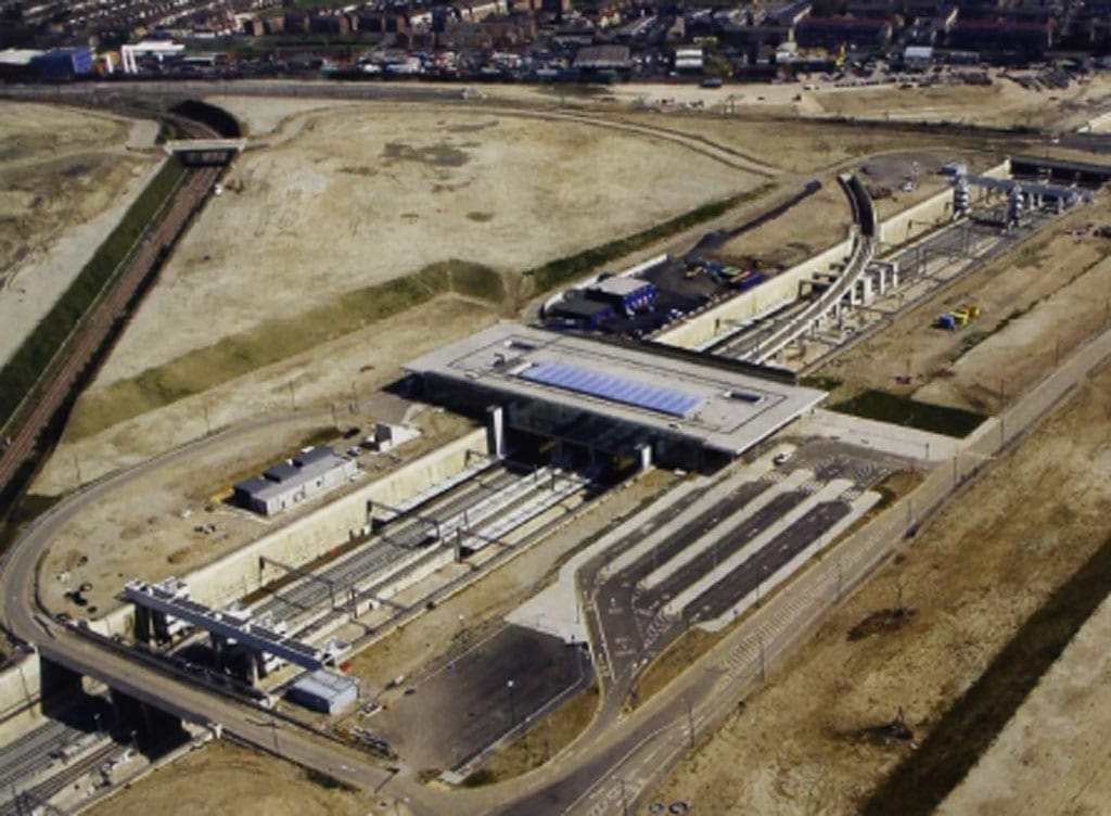 After passing through Ebbsfleet station, HS1 dives into the 2.5km Thames tunnel and emerges onto a viaduct squeezed between the Dartford tunnel exit road and the QE2 bridge carrying the other carriageway of the London orbital road – an operation described as the engineering equivalent of “threading the eye of a needle”.