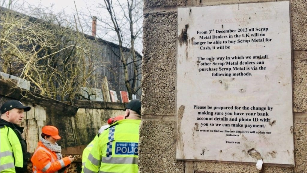 Chief Inspector Gary Jones said: “BTP officers regularly work with industry partners, particularly Network Rail, to catch out and target metal thieves, which includes paying surprise visits to scrap metal yards, as well as patrols and covert and overt operations.