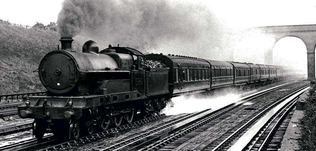 While it’s all too easy to become carried away by the exciting locomotive developments of the 1930s, many of our photographs show that throughout this period, countless pre-grouping locomotives of every kind, many dating from the 19th century, continued to battle on gamely with passenger and goods trains alike.