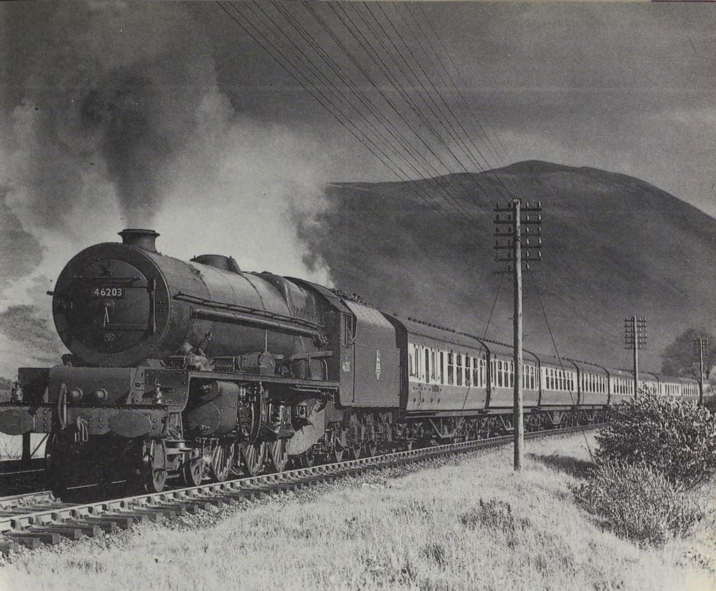 Beattock wit a northbound express circa 7952, when it was based at 66A Polmadie. At that time, its power classification had recently changed from 7P to 8P, which can be seen above the cabside number. Photo: The Rev. E. Treacy.