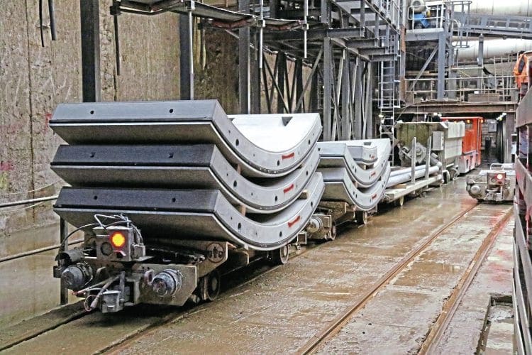 The TBMs can only work with the aid of the 750mm-gauge railway as it brings in the concrete segments used to line the tunnel wall, materials such as grout, new track as the tunnel gets longer, and the line also provides transport for the workforce to and from the TBM.