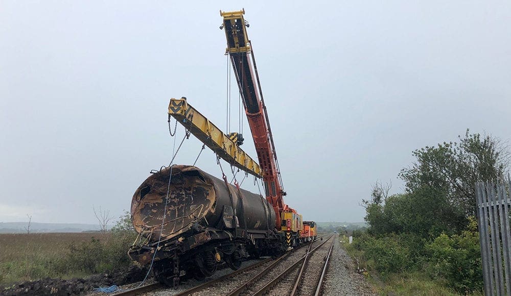 The RAIB investigation states: “At about 23:15 hrs on 26 August 2020, train 6A11, the 21:52 freight service from Robeston (Milford Haven) to Theale, conveying 25 tank wagons, each containing up to 75.5 tonnes of diesel or gas oil, derailed on the ‘Up District’ line near Llangennech, in Carmarthenshire.
