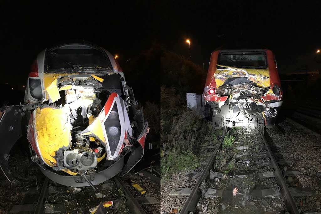 No-one was injured, but the incident caused both trains to crumple at the collision points, and the Azuma came off the tracks.