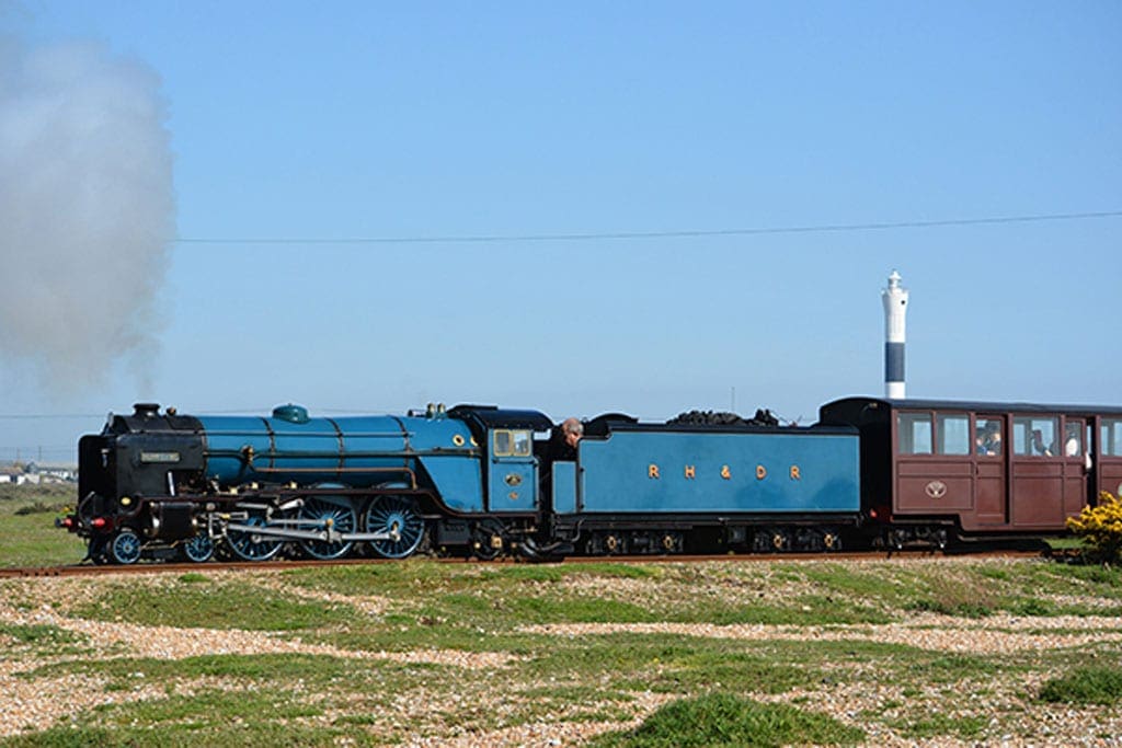 RH&DR runs for 13 ½ miles from the Cinque Port town of Hythe towards the railway’s headquarters at New Romney and finally reaching the National Nature Reserve of Dungeness.