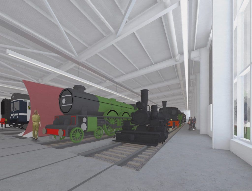 Building work is scheduled to be finished in October 2023. A series of complex rail moves will then take place to begin displaying the historic rail vehicles. These will be displayed on three pairs of tracks allowing visitors to easily see the collection and learn about their significance.