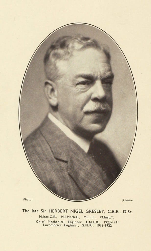Herbert Nigel Gresley, son of the late the Rev. Nigel Gresley, Rector of Netherseale, was born on June 19, 1876, and went to school at Marlborough. He began his railway career at the Crewe works of the L.N.W.R. where he served his apprenticeship under F.W. Webb. He was subsequently a pupil of Sir John Aspinall at Horwich, Lancashire & Yorkshire Railway, and after varied experience achieved the position in 1902 of Assistant Superintendent of the Carriage & Wagon Department. In 1905 he was appointed Carriage & Wagon Superintendent of the Great Northern Railway, which appointment he held until October, 1911, when he succeeded H. A. Ivatt as Locomotive Engineer at Doncaster. On January 1, 1923, he became Chief Mechanical Engineer of the newly-formed London & North Eastern Railway, the only technical officer whose authority covered the the whole railway, as the L.N.E.R. adopted the divisional system, with chief technical officers for each division.