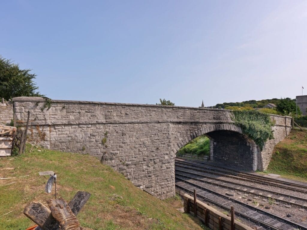 Just east of the Swanage Engine Shed and Turntable, Northbrook Road over the Swanage Railway is one of a series of bridges on the line which opened in 1885. It was built in Purbeck stone, and was designed by notable engineer, W R Galbraith.