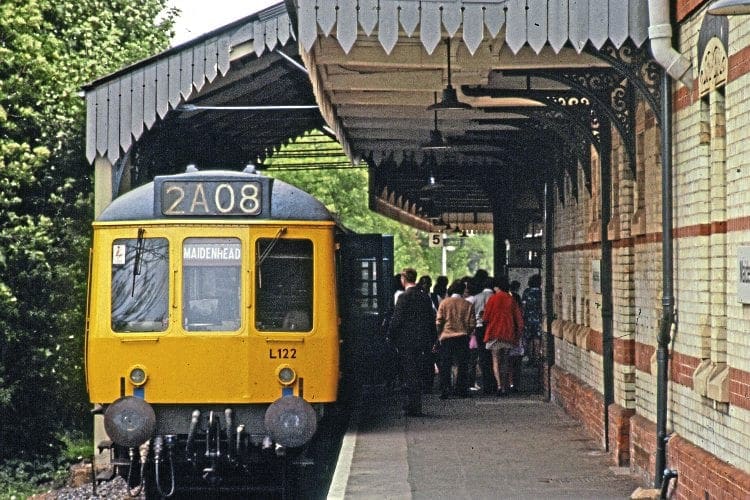 Post-nationalisation steam services were worked by a variety of ex-GWR tank engines, with Prairies and Panniers working many of the trains between Maidenhead and High Wycombe; ‘14XX’ Class 0-4-2Ts worked the shuttles between Bourne End and Marlow. Dieselisation arrived in 1962, with first-generation DMUs working on the branch, predominantly of Classes 117 and 121; these lasted until 1992/1993 when the Class 165s and 166s replaced the earlier designs and provided a better journey experience.