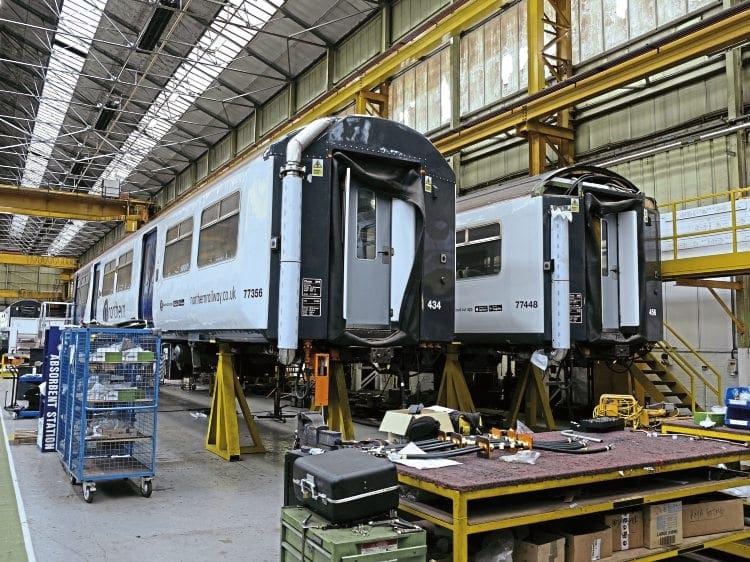 The first two sets – Nos. 319434 and 319456 – are nearing completion, with much of the work to modify the driving trailer cars with 390kW (523hp) MAN D2876 diesel power packs now in place.