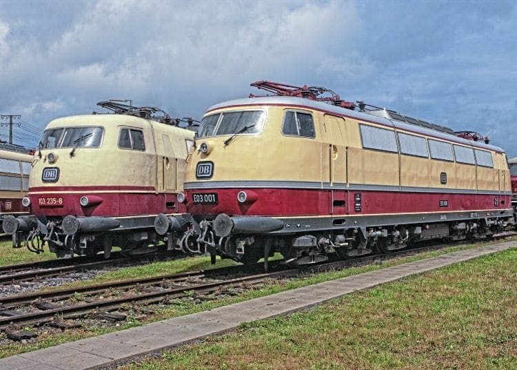 No fewer than 17 of the 149 locomotives built survive across Germany in various states of repair, including three of the four prototypes – E03 001/002/004. From the production batch, Nos. 103 101/132/136/167/197/220/224/226 have found homes at museums around the country, while DB’s own museum fleet includes Nos. 103 113/184/235/245 and the unique DBAG verkehrsrot (traffic red) 103 233.