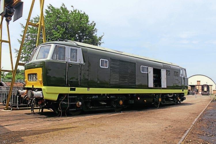 The transmission was manually locked in neutral to permit the loco to be towed to the Diesel & Electric Preservation Group’s base at Williton. Only after removing the cooler group will it be possible to look inside the gearbox to see the extent of the problem.