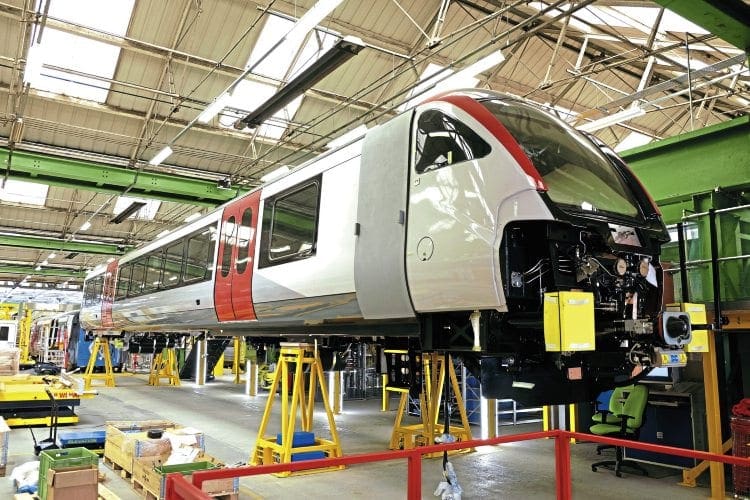 THE first of 665 ‘Aventra’ vehicles for Greater Anglia is approaching completion at Bombardier’s Litchurch Lane works in Derby.