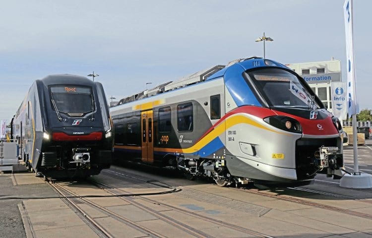 Italian ‘Rock n Pop’ side-by-side: Italian national operator Trenitalia brands its new double-deck EMUs built by Hitachi as ‘Rock’, while on the right the latest Alstom ‘Coradia Stream’ EMU for Trenitalia is branded ‘Pop’. Both trains are built in Italy. Trenitalia has 118 ‘Rock’ double-deck units on order from Hitachi, while Alstom has orders for 101 of the ‘Pop’ trains. ALL IMAGES: KEITH FENDER