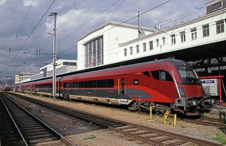 Just why the Austrian Railways Östeirreiche Bundesbahn (OBB) should have decided to market their prime railway services ‘Railjet’ with connotations of heavily polluting aircraft, I am not sure, but it nevertheless seems to work.