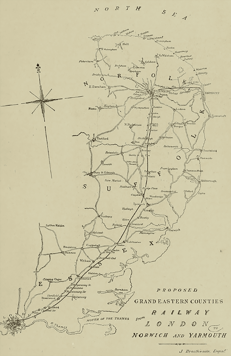 Proposed Grand Eastern Counties railway from London to Norwich and Yarmouth.