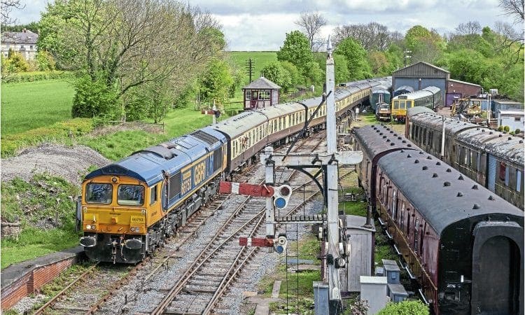 GB RAILFREIGHT No. 66753 EMD Roberts Road edges into Butterley loop with UK Railtours’ ‘Amber Valley Venturer’ tour from Euston on