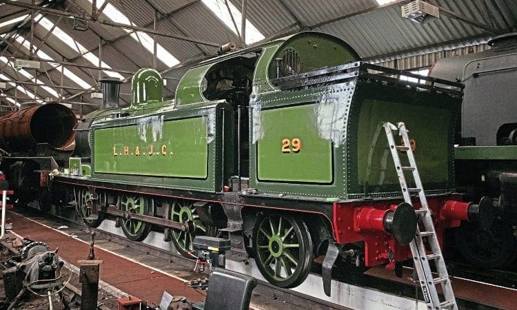 EX-Lambton, Hetton & Joicey Collieries Kitson 0-6-2T No. 29 (4263/1904) was undergoing final painting at the North Yorkshire Moors Railway’s Grosmont